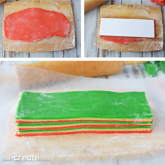 Wrap each individual color of dough well in wax paper and then put it into the refrigerator to chill for at least three hours.